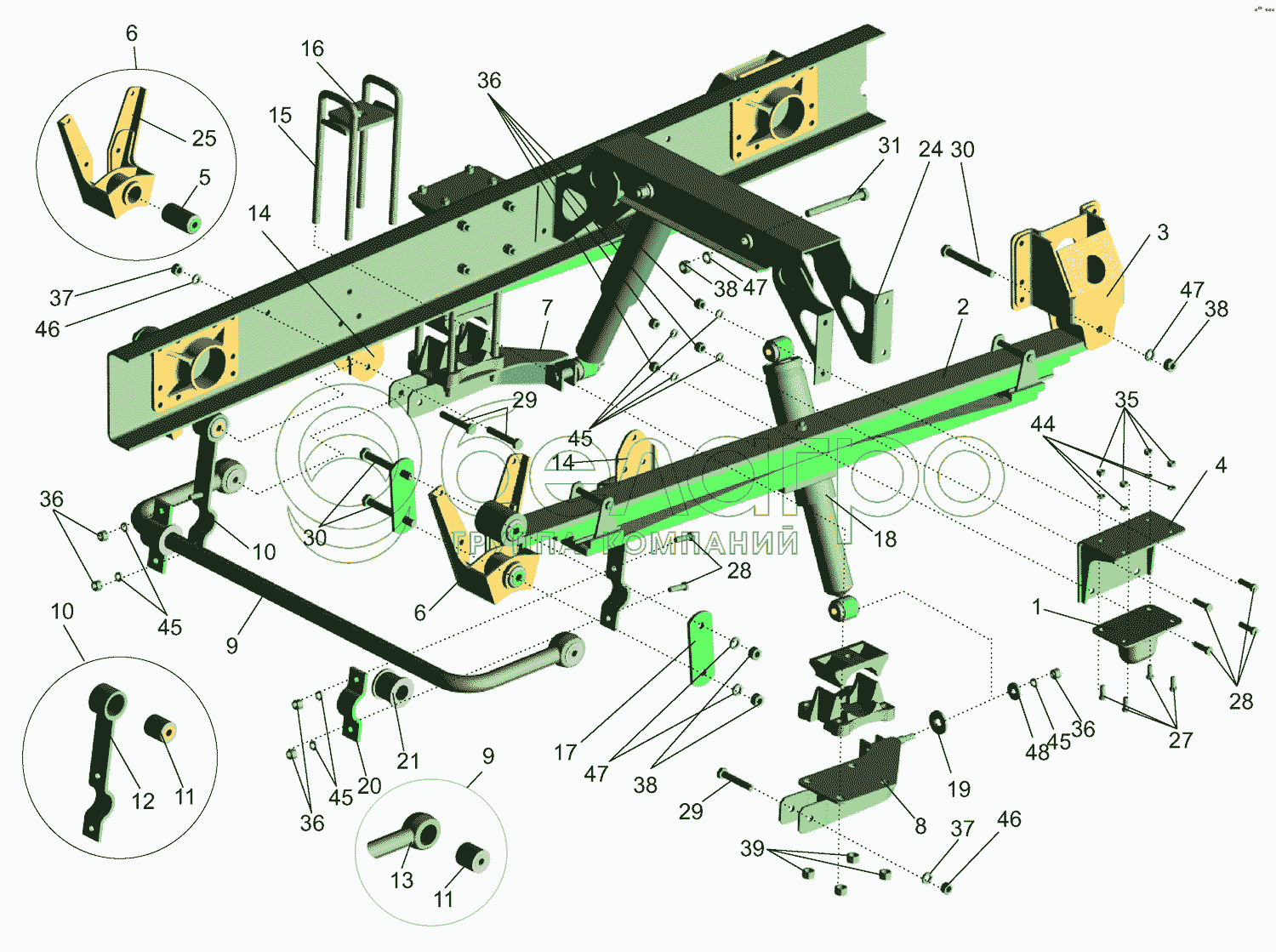 Каталог запасных частей к технике: МАЗ-437040 (Зубренок). Подвеска задняя 4370-2900002