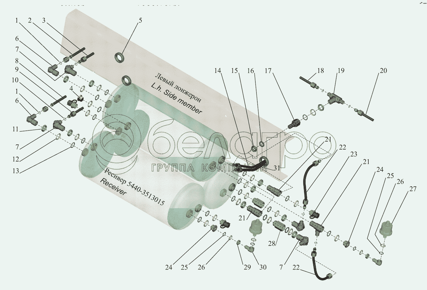 Каталог запасных частей к технике: МАЗ-437040 (Зубренок). Присоединительная арматура к ресиверам