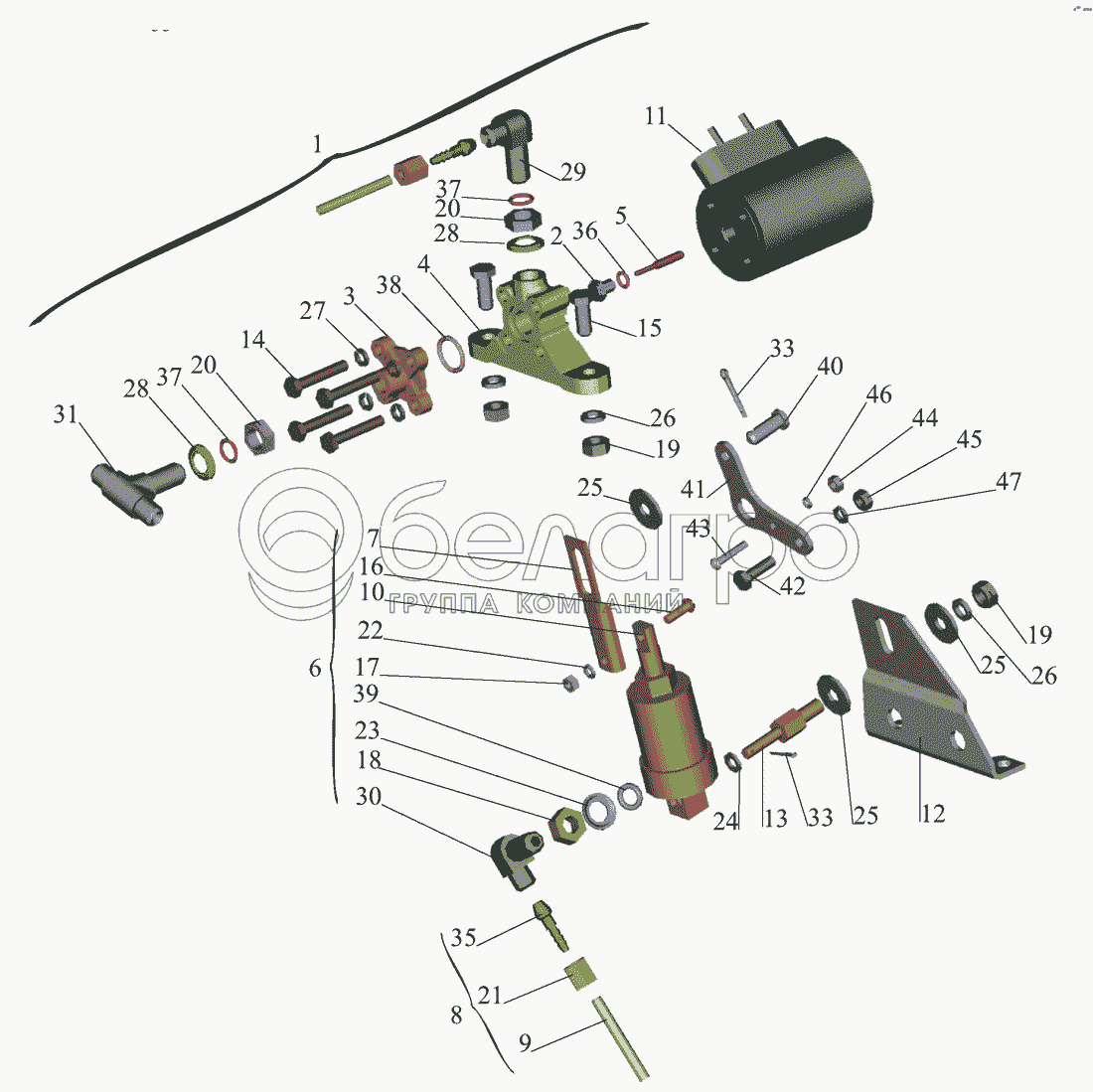 Каталог запасных частей к технике: МАЗ-437040 (Зубренок). Привод останова двигателя 437041-1115004