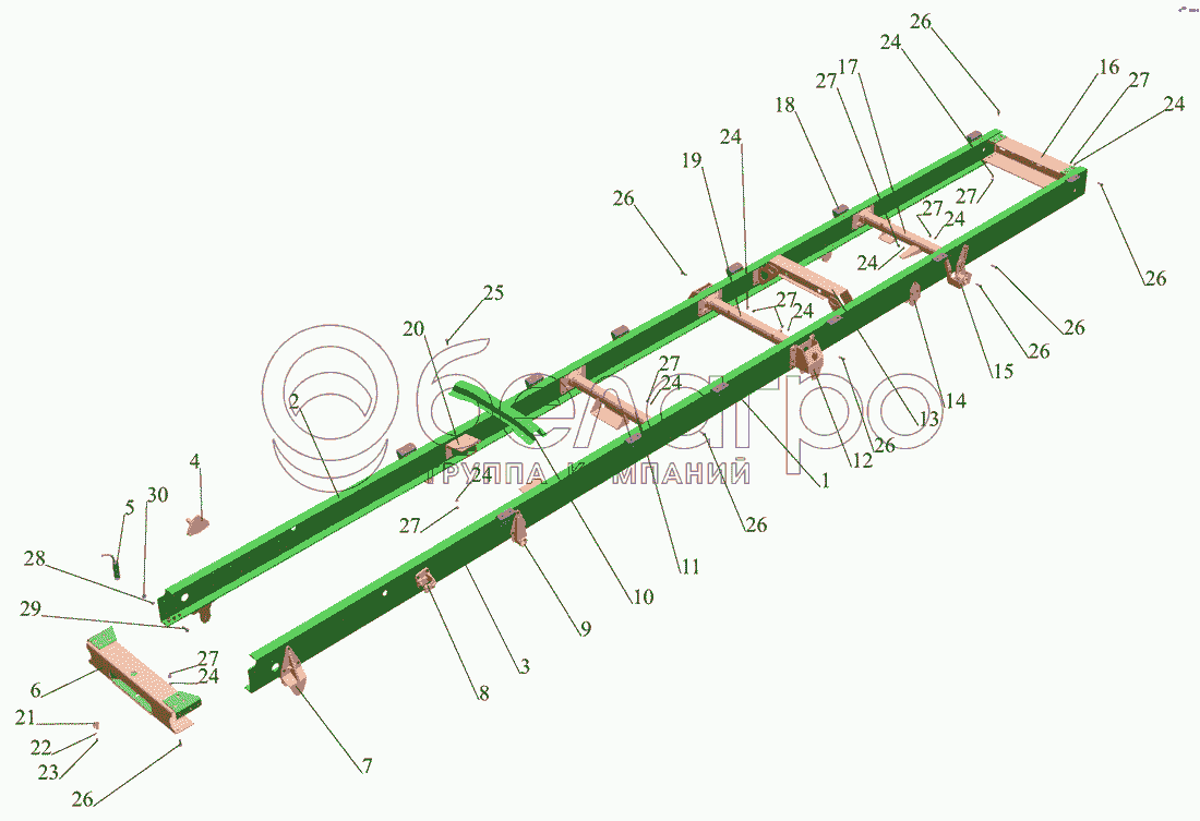 Каталог запасных частей к технике: МАЗ-437040 (Зубренок). Рама МАЗ-437141