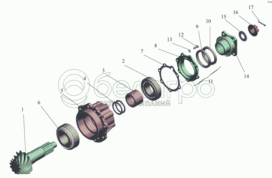 Каталог запасных частей к технике: МАЗ-437040 (Зубренок). Редуктор заднего моста. Шестерня ведущая