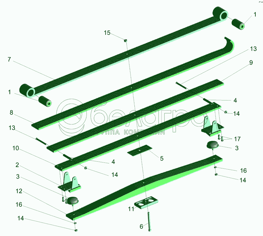 Каталог запасных частей к технике: МАЗ-437040 (Зубренок). Рессора задняя 4370-2902012