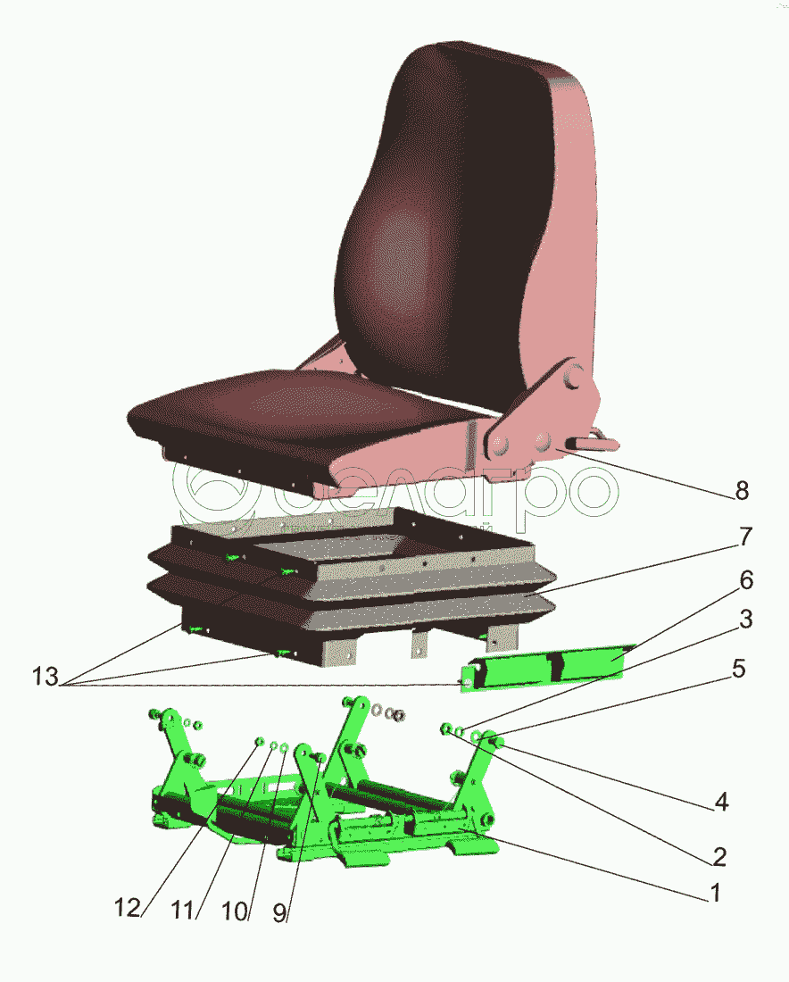 Каталог запасных частей к технике: МАЗ-437040 (Зубренок). Сидение