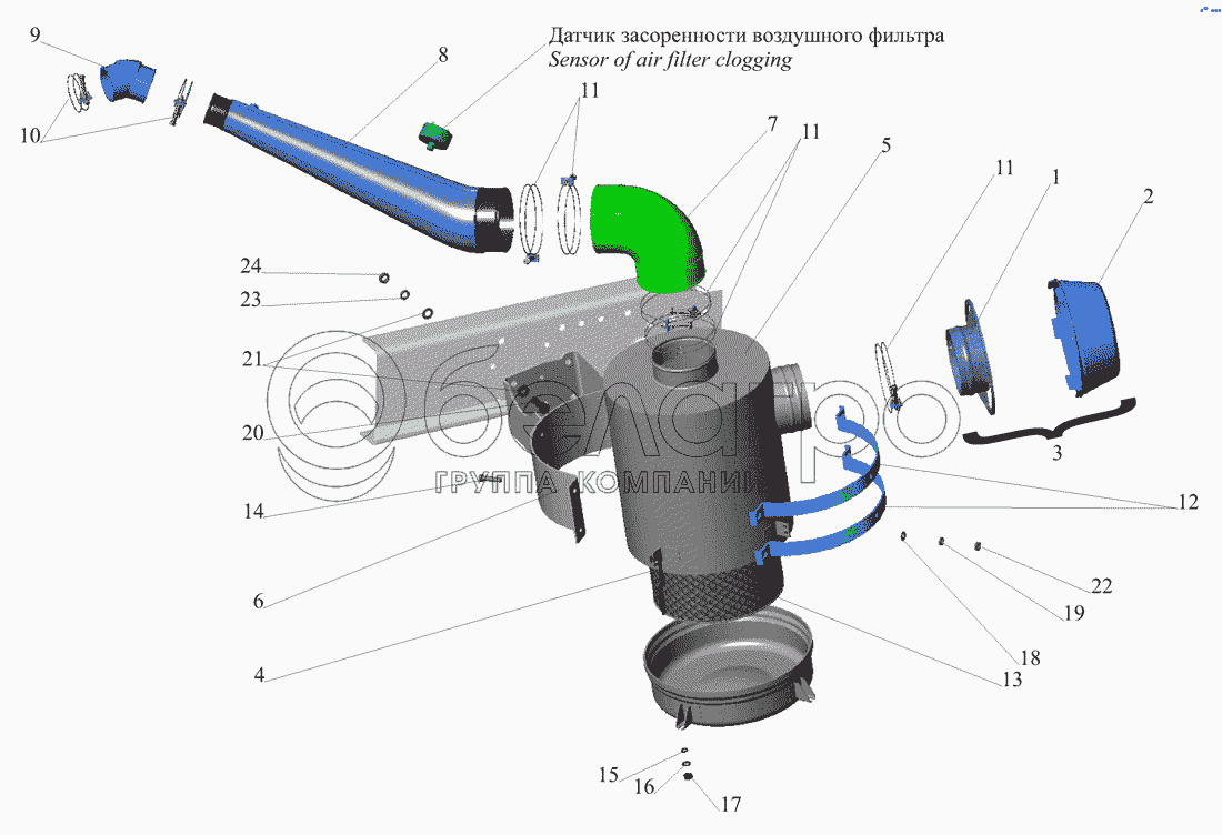 Каталог запасных частей к технике: МАЗ-437040 (Зубренок). Система питания воздухом 437040-1109002