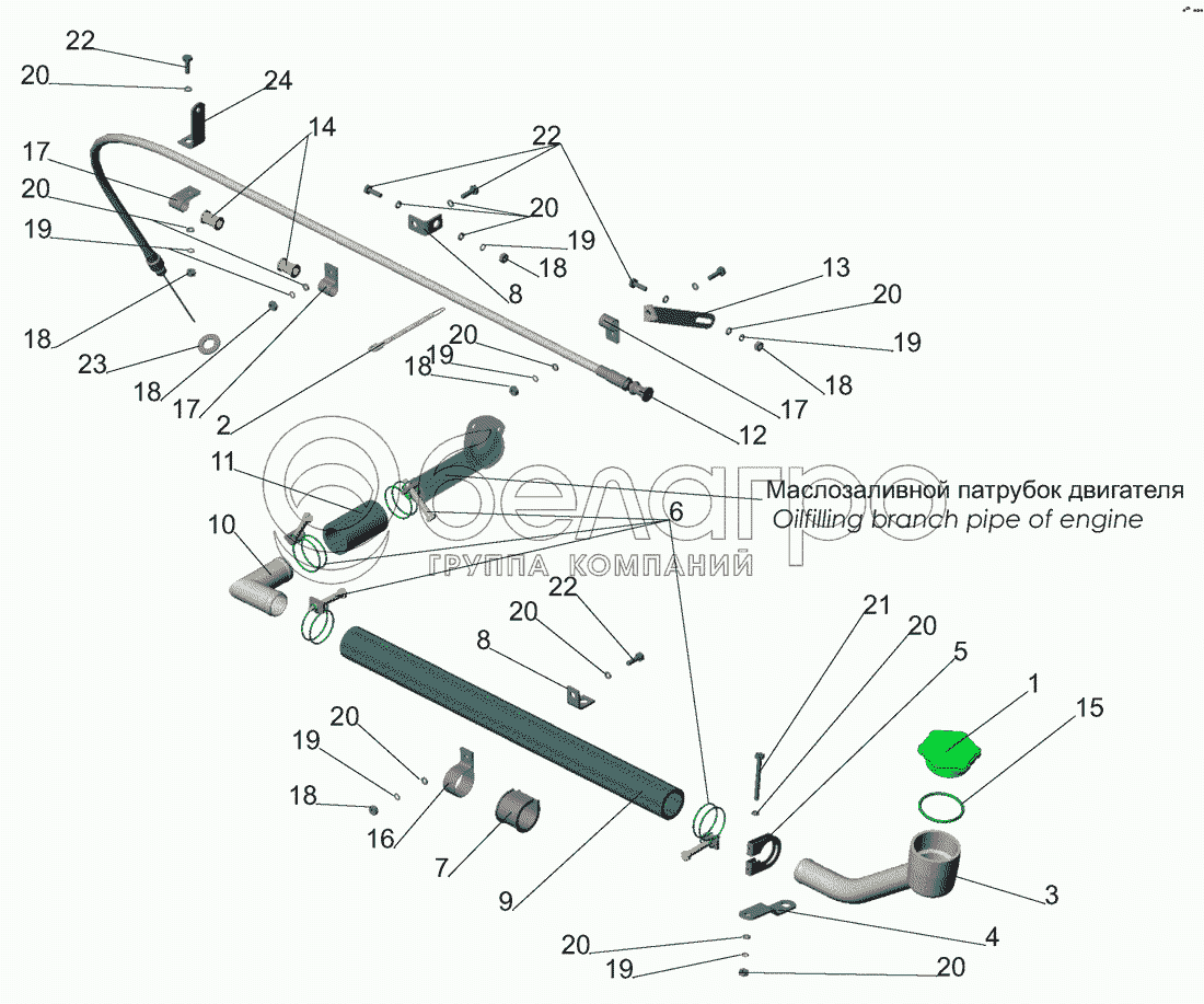 Каталог запасных частей к технике: МАЗ-437040 (Зубренок). Система заливки и контроля уровня масла
