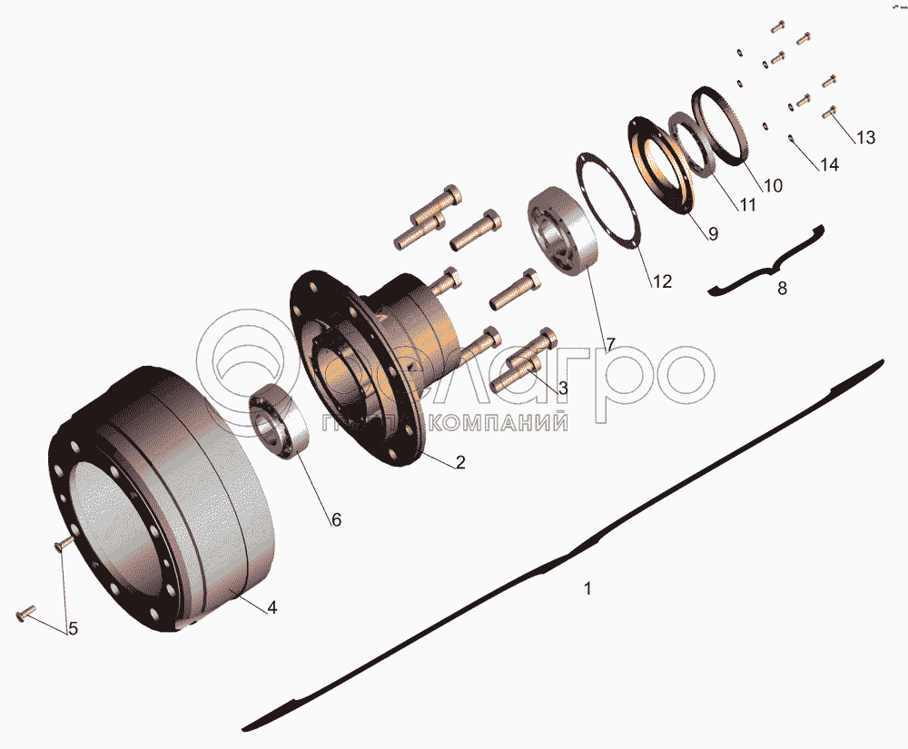 Каталог запасных частей к технике: МАЗ-437040 (Зубренок). Ступица переднего колеса 4370-3103006
