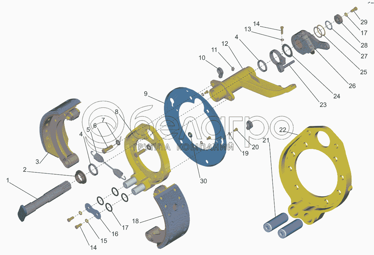 Каталог запасных частей к технике: МАЗ-437040 (Зубренок). Тормозной механизм передней оси
