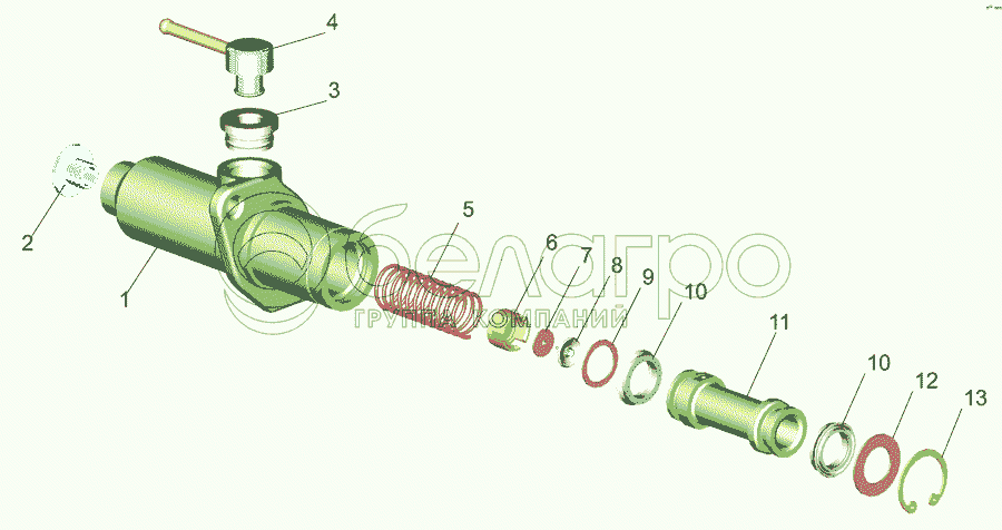 Каталог запасных частей к технике: МАЗ-437040 (Зубренок). Цилиндр подпедальный 6430-1602510