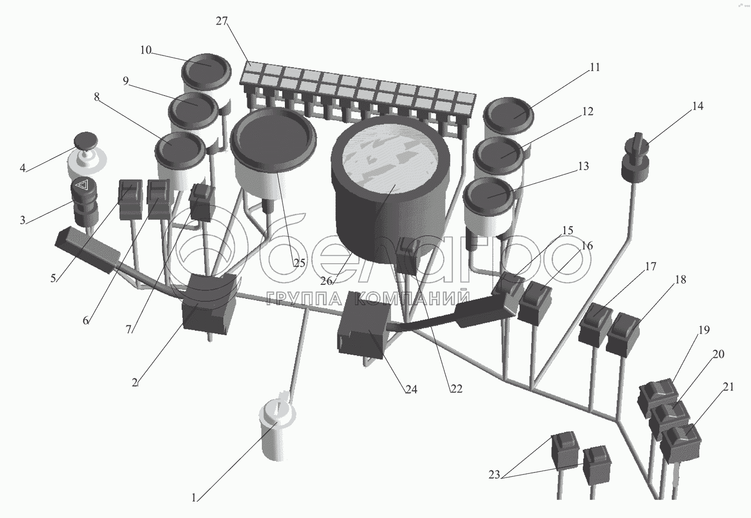 Каталог запасных частей к технике: МАЗ-437040 (Зубренок). Установка приборов и выключателей