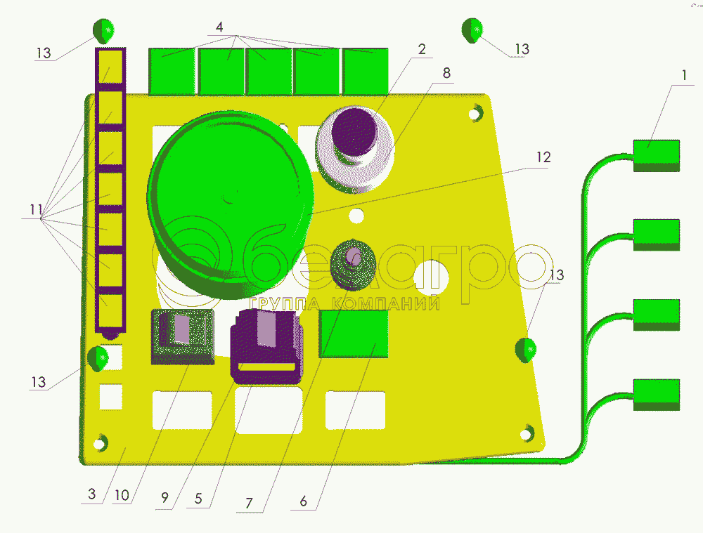 Каталог запасных частей к технике: МАЗ-437040 (Зубренок). Установка приборов и выключателей