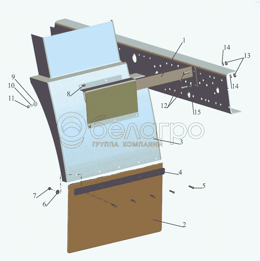 Каталог запасных частей к технике: МАЗ-437040 (Зубренок). Установка брызговиков передних колес 4371-8400030