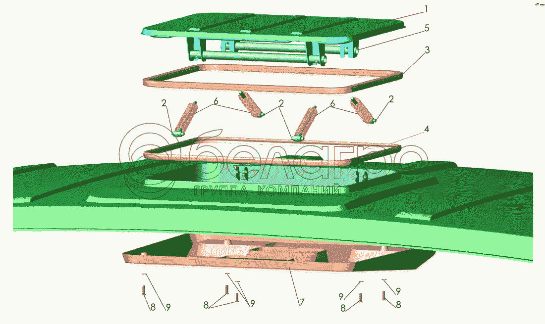 Каталог запасных частей к технике: МАЗ-437040 (Зубренок). Установка крышки вентиляционного люка
