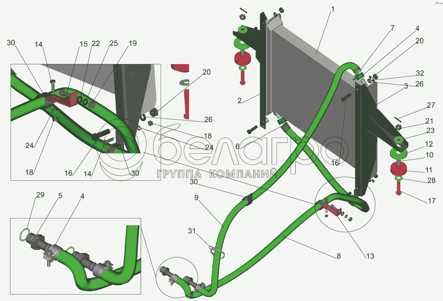 Каталог запасных частей к технике: МАЗ-437040 (Зубренок). Установка масляных радиаторов