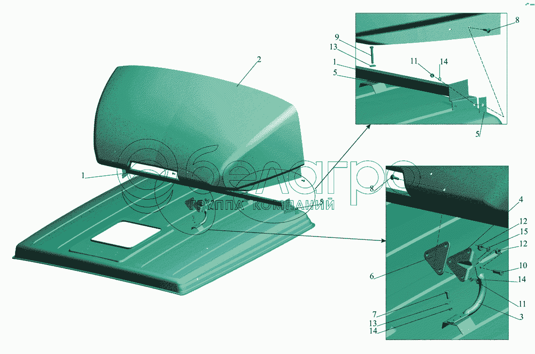 Каталог запасных частей к технике: МАЗ-437040 (Зубренок). Установка обтекателей 4370-8000014-010