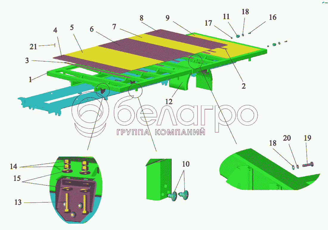 Каталог запасных частей к технике: МАЗ-437040 (Зубренок). Установка основания,панелей настила,брызговиков