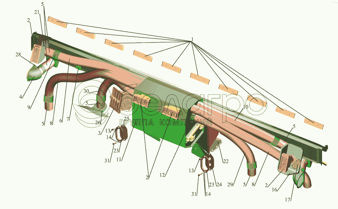 Каталог запасных частей к технике: МАЗ-437040 (Зубренок). Установка отопителя 6430-8100001