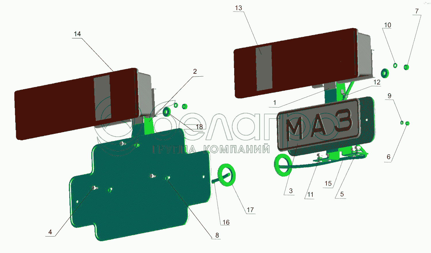 Каталог запасных частей к технике: МАЗ-437040 (Зубренок). Установка задних фонарей