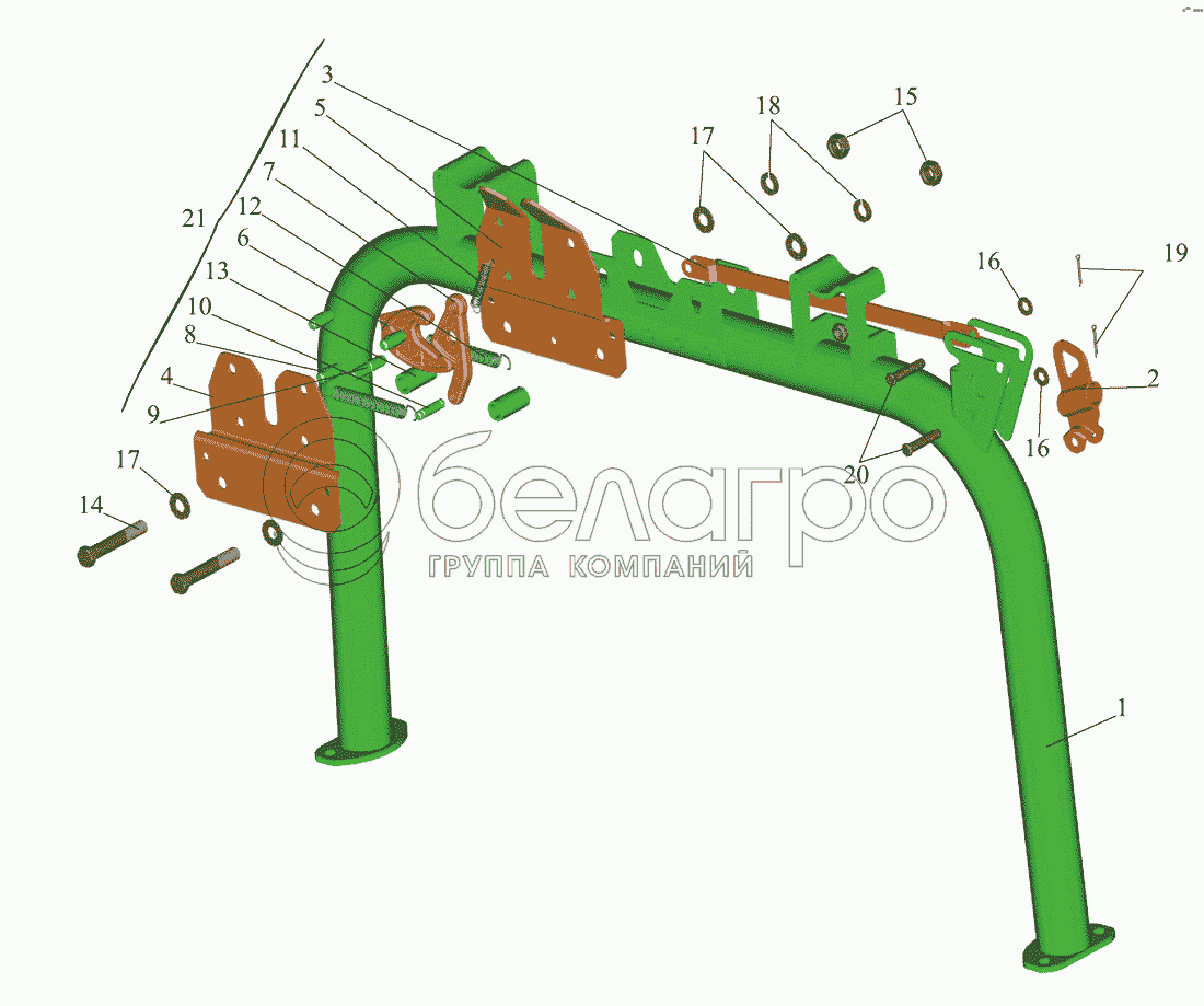 Каталог запасных частей к технике: МАЗ-437040 (Зубренок). Запорный механизм кабины 64225-5001660