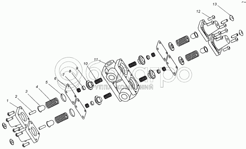 Каталог запасных частей к технике: МАЗ-437040 (Зубренок). Клапан защитный четырехконтурный