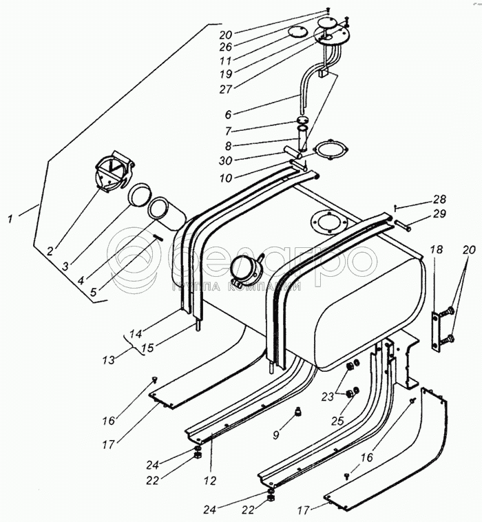 Каталог запасных частей к технике: МАЗ-437040 (Зубренок). Крепление топливного бака