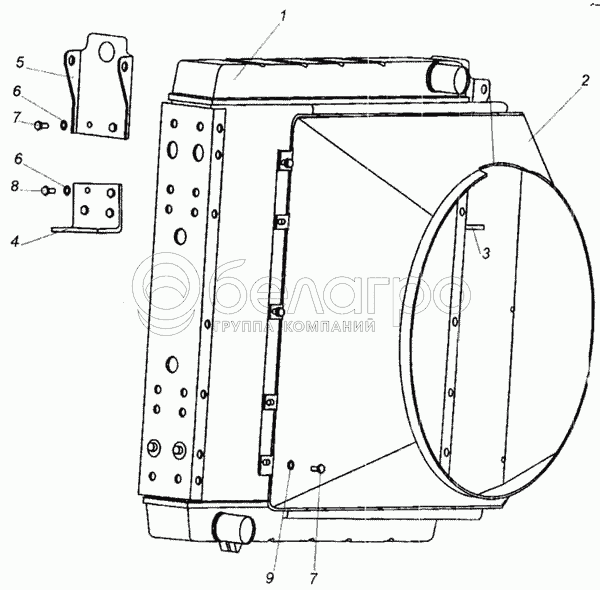 Каталог запасных частей к технике: МАЗ-437040 (Зубренок). Радиатор с кожухом