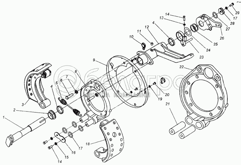 Каталог запасных частей к технике: МАЗ-437040 (Зубренок). Тормозной механизм передней оси