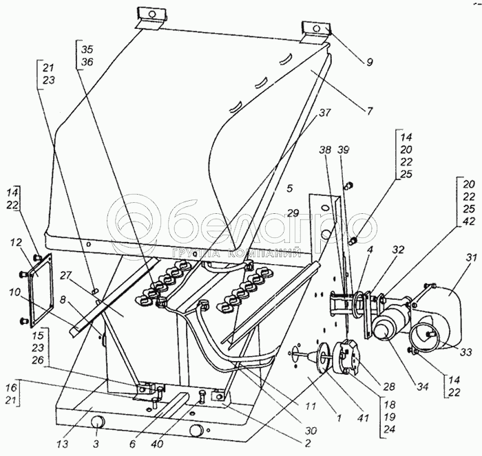Каталог запасных частей к технике: МАЗ-437040 (Зубренок). Установка аккумуляторных батарей