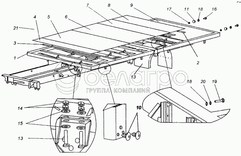 Каталог запасных частей к технике: МАЗ-437040 (Зубренок). Установка основания, панелей настила, брызговиков