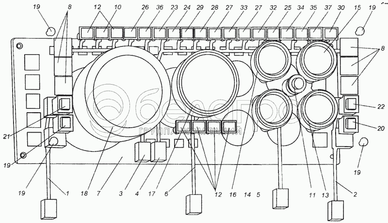 Каталог запасных частей к технике: МАЗ-437040 (Зубренок). Установка приборов и выключателей