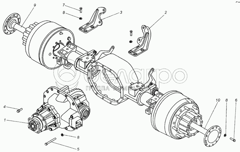 Каталог запасных частей к технике: МАЗ-437040 (Зубренок). Установка редуктора