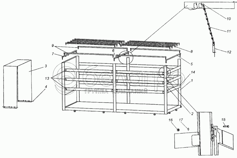 Каталог запасных частей к технике: МАЗ-437040 (Зубренок). Установка тентовой надстройки и тента