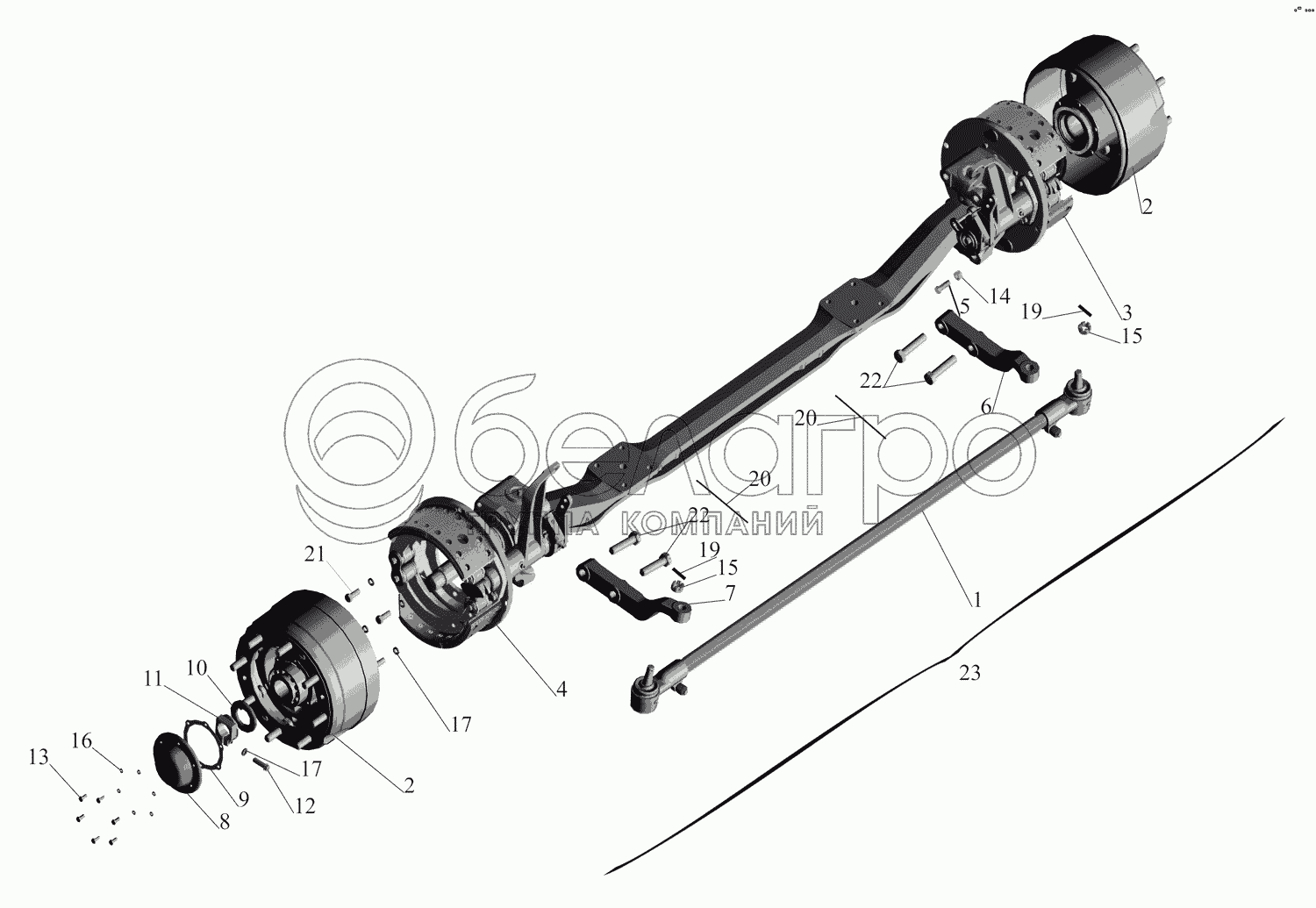 Каталог запасных частей к технике: МАЗ-437041 (Зубренок). Передняя ось 4570-3000015-010