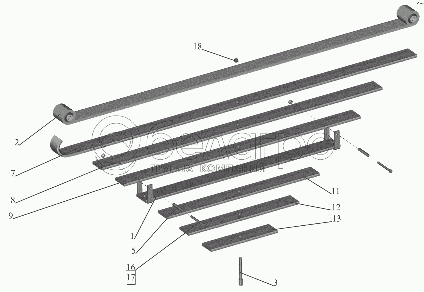 Каталог запасных частей к технике: МАЗ-437041 (Зубренок). Рессора передняя 4370-2902012-011
