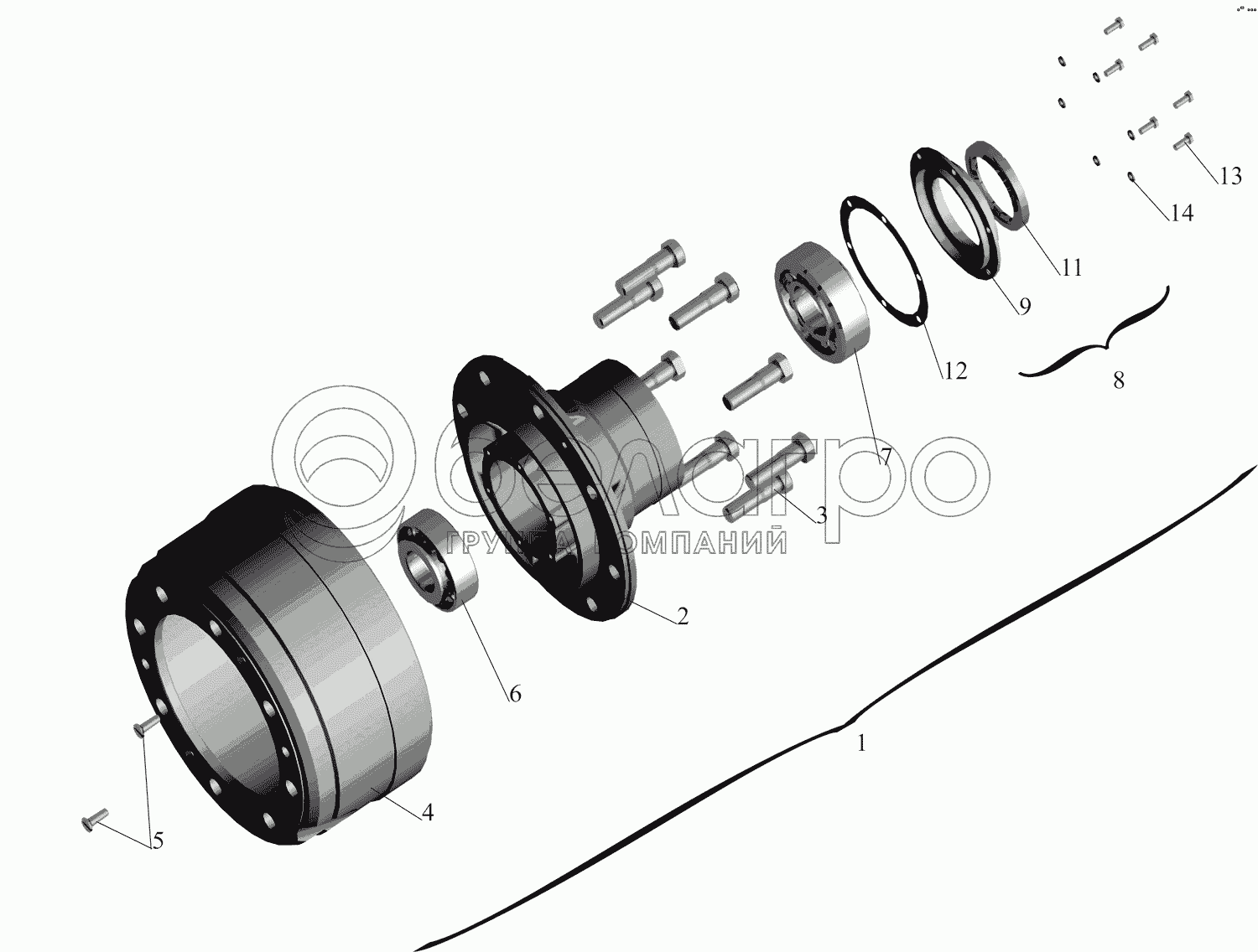 Каталог запасных частей к технике: МАЗ-437041 (Зубренок). Ступица переднего колеса 4370-3103006