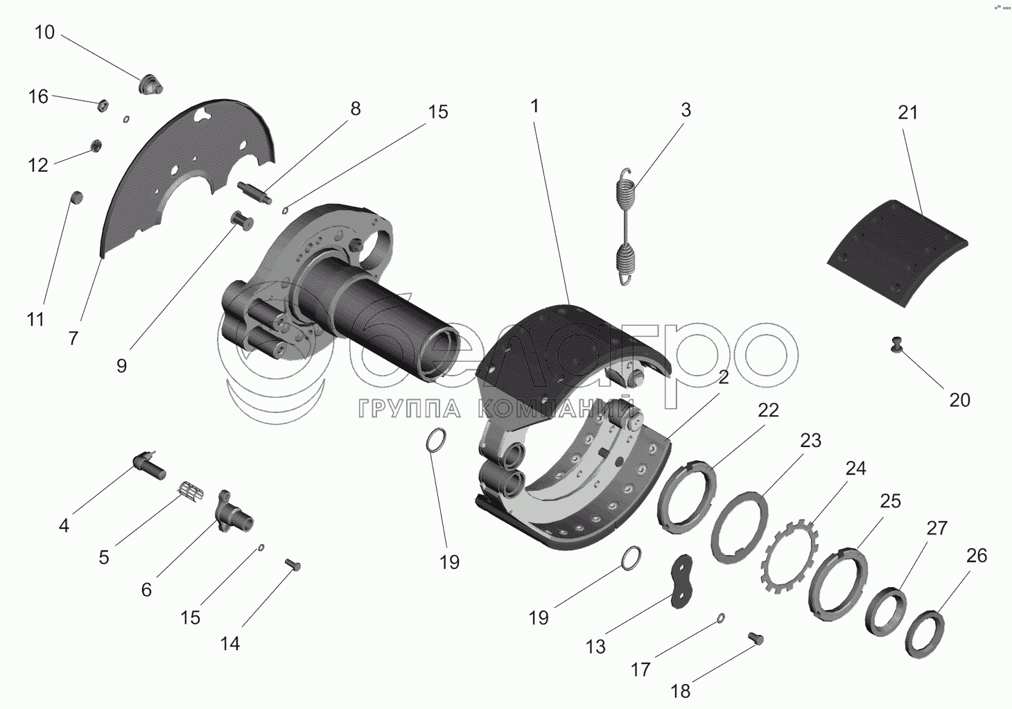 Каталог запасных частей к технике: МАЗ-437041 (Зубренок). Тормоз заднего колеса
