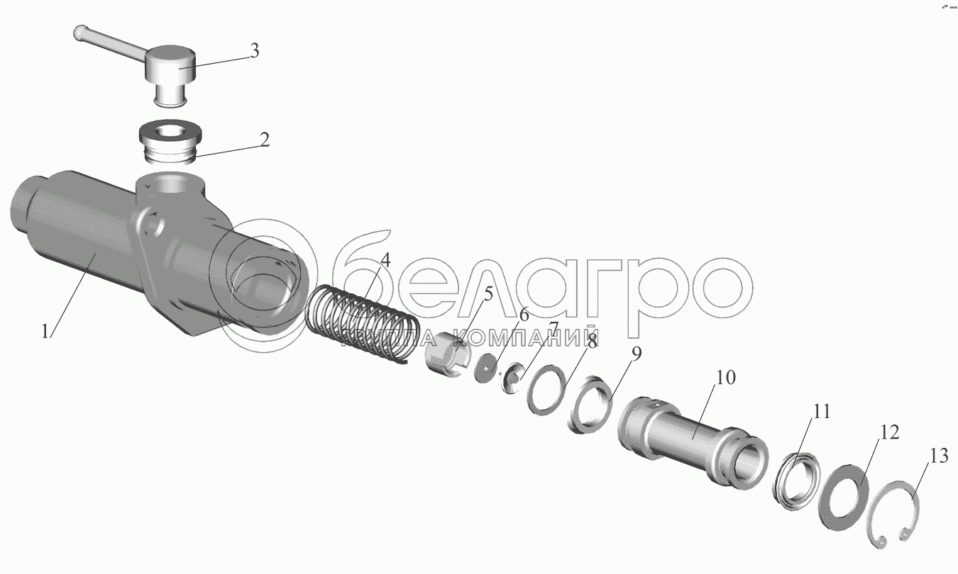 Каталог запасных частей к технике: МАЗ-437041 (Зубренок). Цилиндр подпедальный 6430-1602510