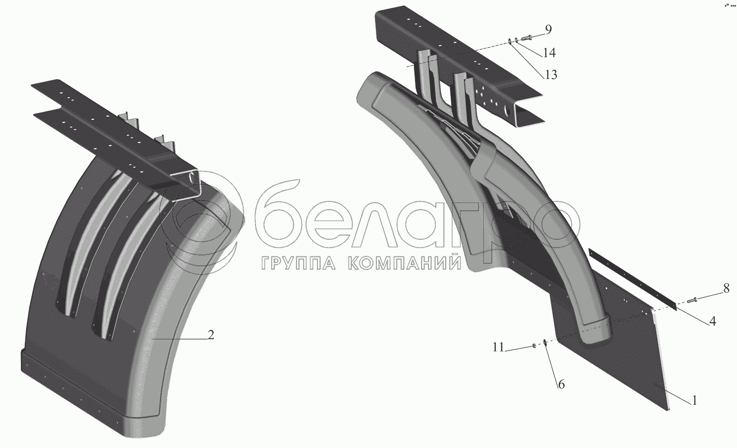 Каталог запасных частей к технике: МАЗ-437041 (Зубренок). Установка брызговиков 4370-8500048-020