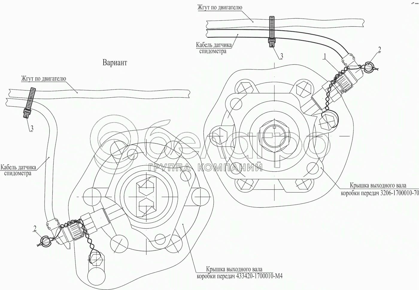Каталог запасных частей к технике: МАЗ-437041 (Зубренок). Установка датчика спидометра 437041-3800006-002