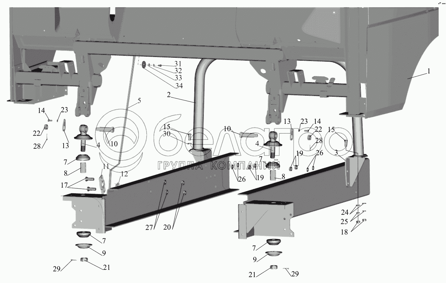 Каталог запасных частей к технике: МАЗ-437041 (Зубренок). Установка кабины 4370-5000002