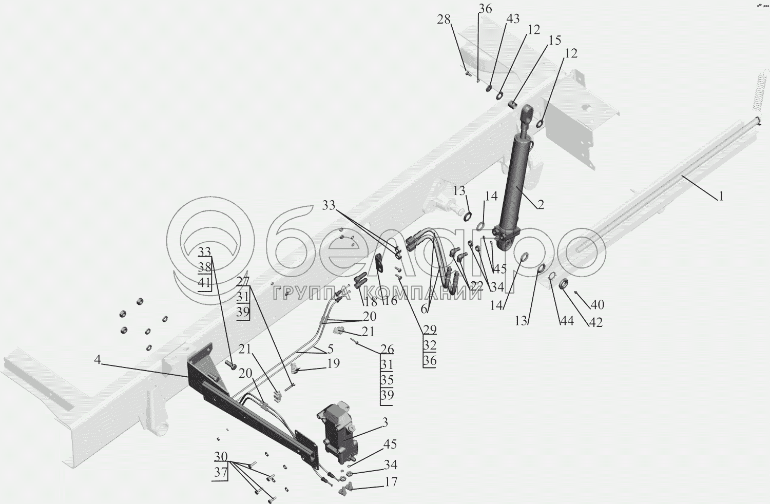 Каталог запасных частей к технике: МАЗ-437041 (Зубренок). Установка механизма подъема кабины 4370-5000040