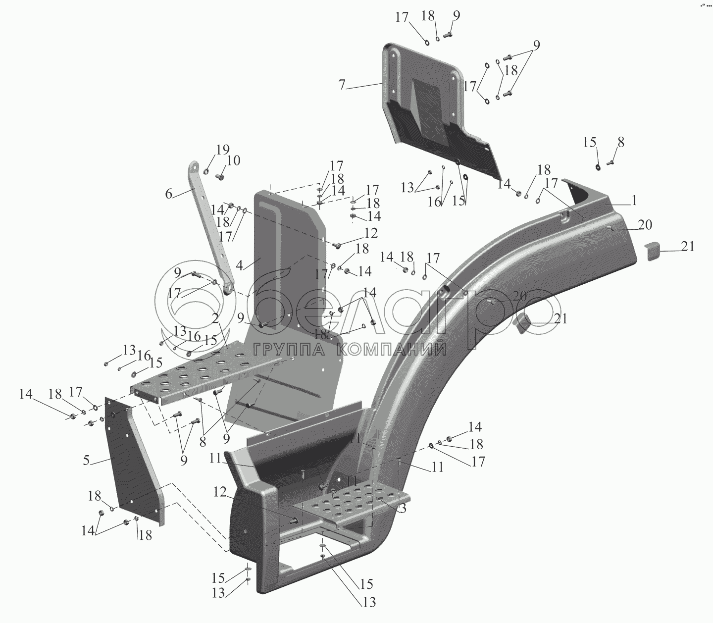 Каталог запасных частей к технике: МАЗ-437041 (Зубренок). Установка оперения 4370-8400020-050