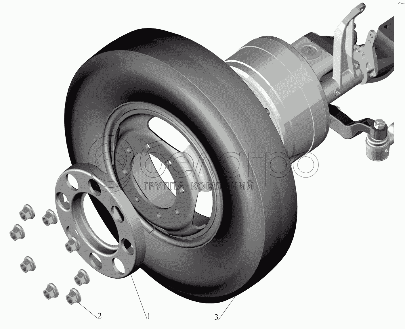 Каталог запасных частей к технике: МАЗ-437041 (Зубренок). Установка передних колес 457041-3100005