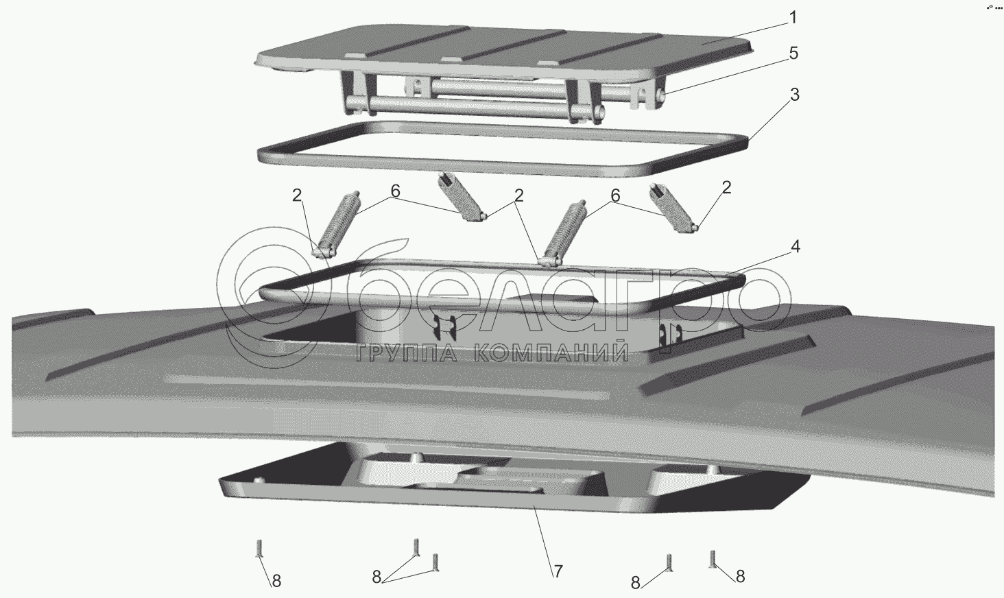 Каталог запасных частей к технике: МАЗ-437041 (Зубренок). Установка вентиляционного люка 64221-5700010