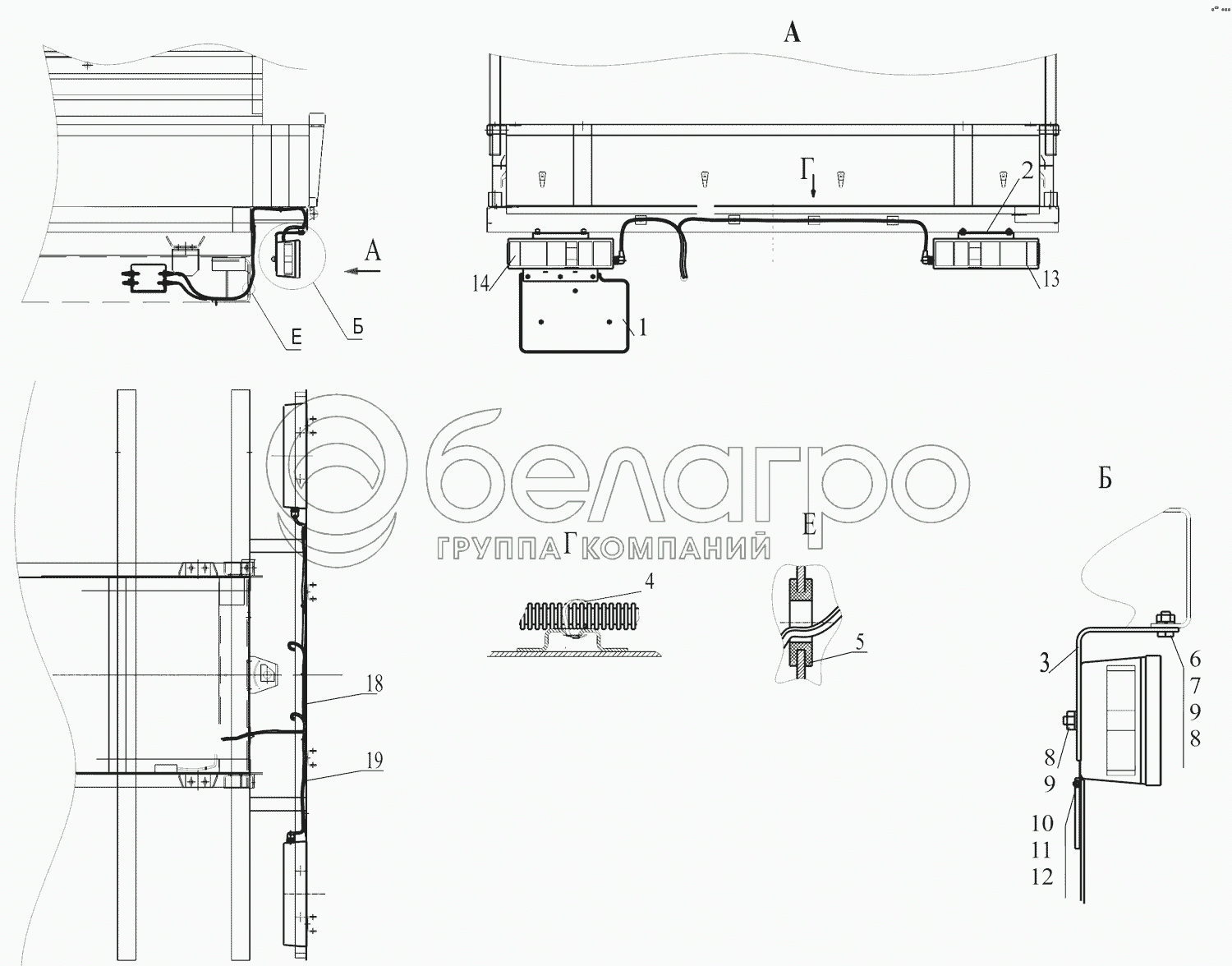 Каталог запасных частей к технике: МАЗ-437041 (Зубренок). Установка задних фонарей P437041-3700009