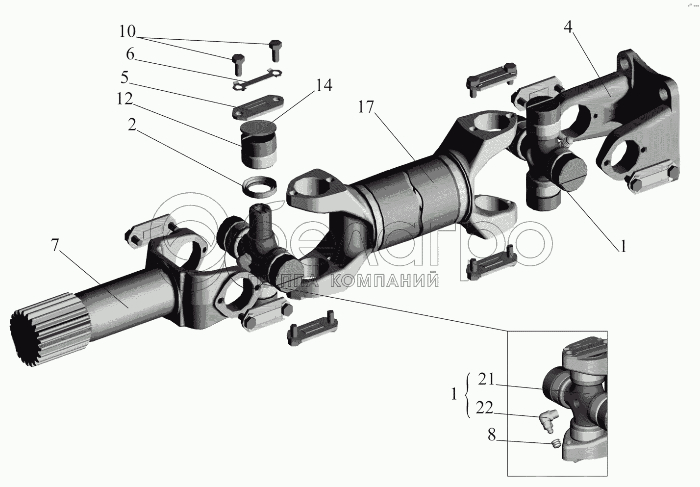 Каталог запасных частей к технике: МАЗ-437041 (Зубренок). Вал карданный 4370-2201010-010