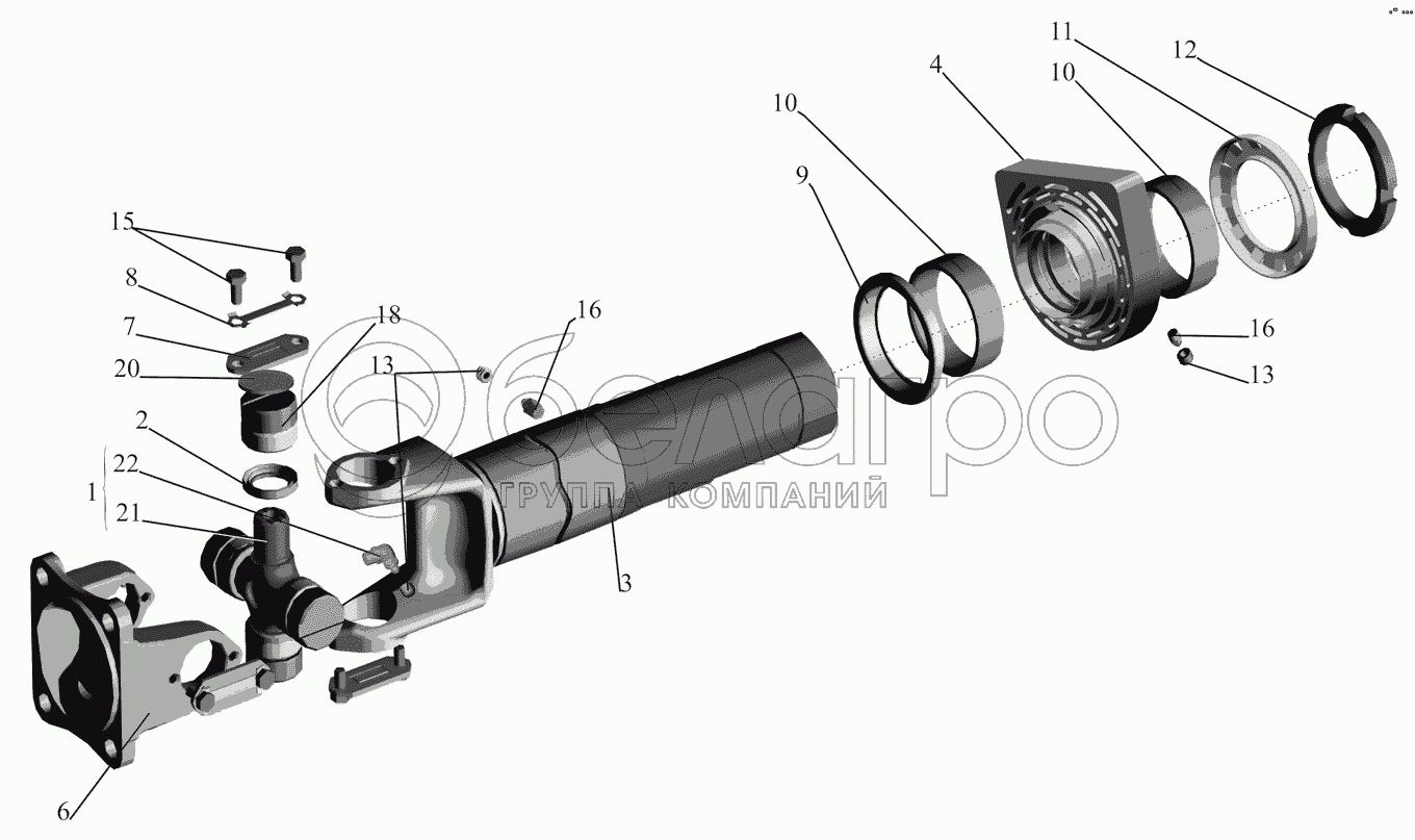 Каталог запасных частей к технике: МАЗ-437041 (Зубренок). Вал карданный промежуточный 4370-2202010-060