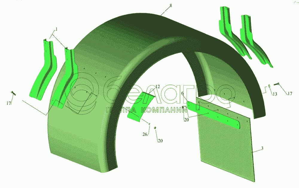 Каталог запасных частей к технике: МАЗ-437043 (Зубренок). Брызговик 4370-8511010-010