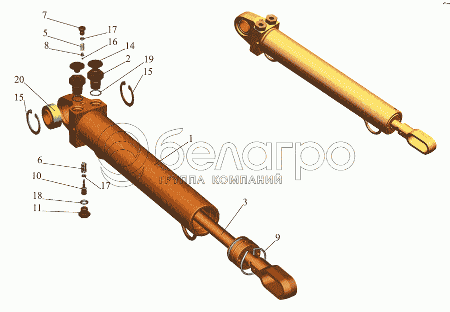 Каталог запасных частей к технике: МАЗ-437043 (Зубренок). Гидроцилиндр 4370-5003010