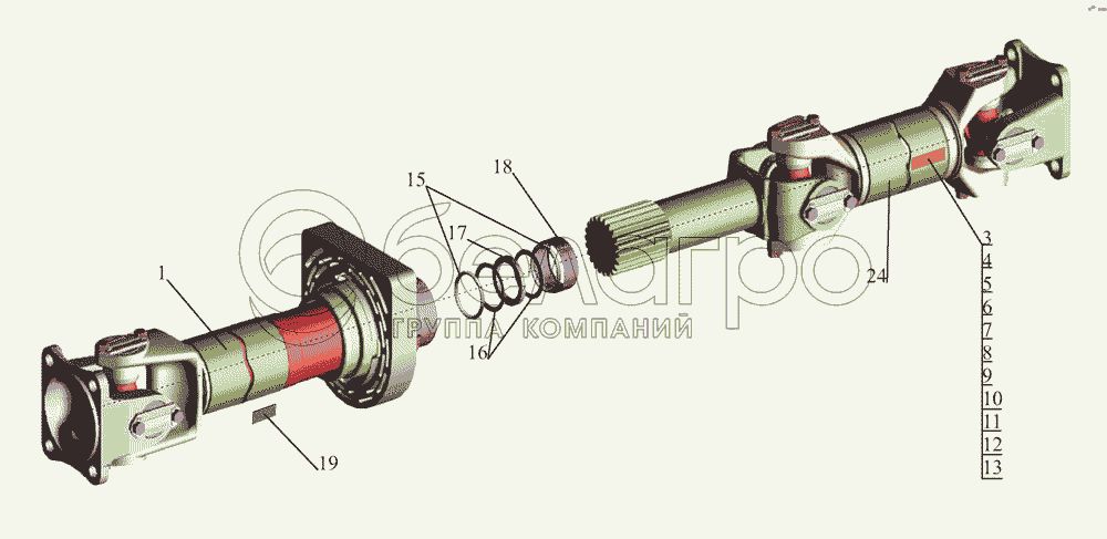 Каталог запасных частей к технике: МАЗ-437043 (Зубренок). Карданная передача 4370-2201006-010