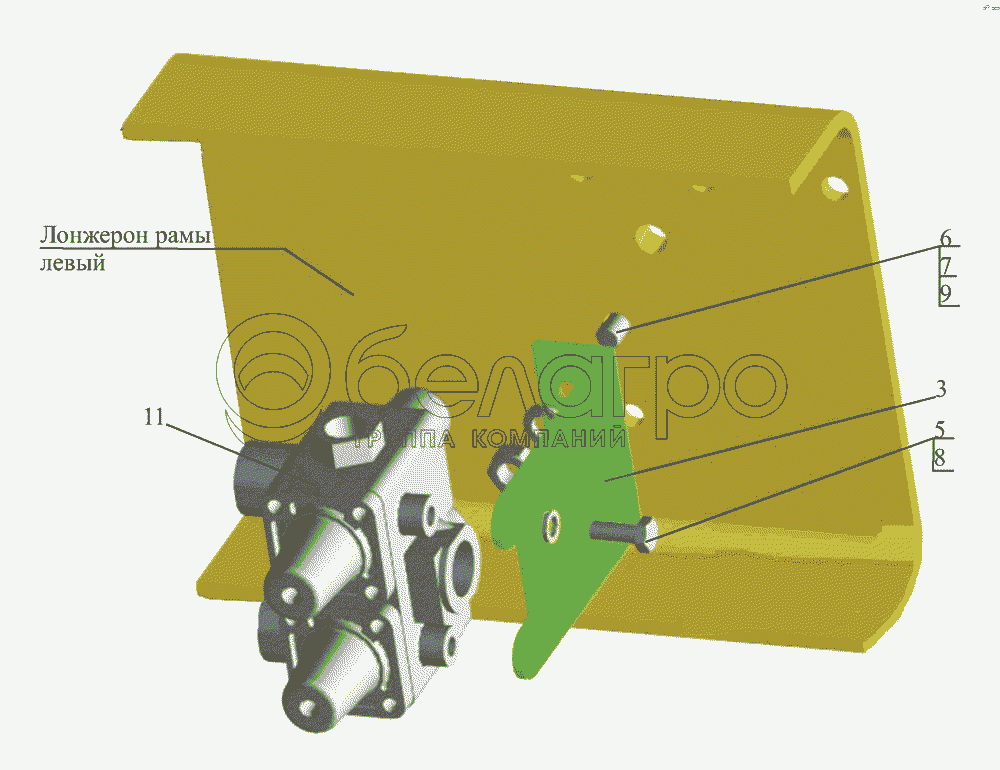 Каталог запасных частей к технике: МАЗ-437043 (Зубренок). Крепление клапана четырехконтурного 6430-3515002